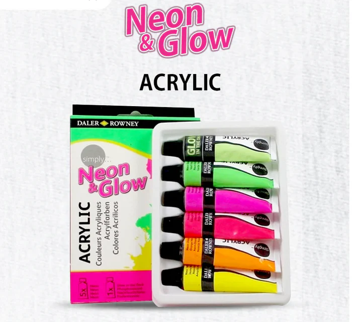 Daler Rowney Simply Neon And Glow Acrylic Paint Set of 6 Pcs – 12ml