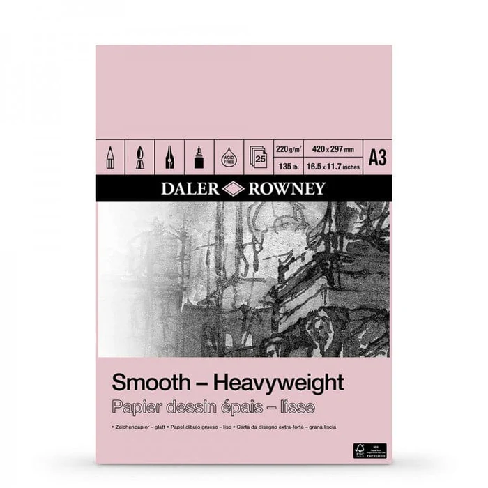 Experience premium quality and durability with the Daler Rowney Smooth Heavyweight Pad. Each pad features 25 sheets of 220gsm acid-free paper, designed to handle various artistic techniques with ease. The smooth surface ensures excellent ink flow and sharp detail, making it ideal for detailed drawings, illustrations, and mixed media artworks. This pad is perfect for artists who require a sturdy, reliable surface that can withstand multiple layers and erasures without compromising quality. Whether you’re a student, hobbyist, or professional, this pad provides the perfect canvas for your creative expressions.